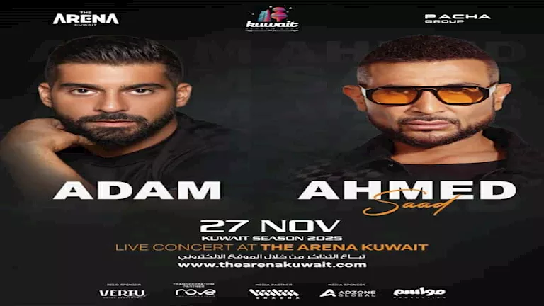 وتكون الافتتاحية يوم الخميس 27 نوفمبر على مسرح الأرينا” الصرح الاضخم في الكويت، حيث يجتمع النجم أحمد سعد والنجم آدم في سهرة استثنائية تمزج بين الطرب، الحماس، والإبهار.