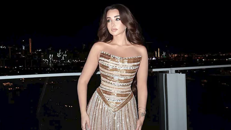 وظهرت هنا بإطلالة انيقة ومميزة ضمن فعاليات مهرجان “ضيافة”، مرتدية فستان ذهبي ساحر.