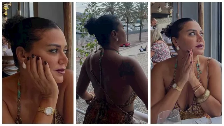 وخطفت رانيا الأنظار بإطلالة صيفية أنيقة، حيث ظهرت تستمتع بإطلالة البحر والمناظر الطبيعية، ، واختارت ارتداء فستانًا خفيفًا بألوان ونقوش مميزة تناسب أجواء البحر، كما أبرزت تاتو على شكل وردة كبيرة.