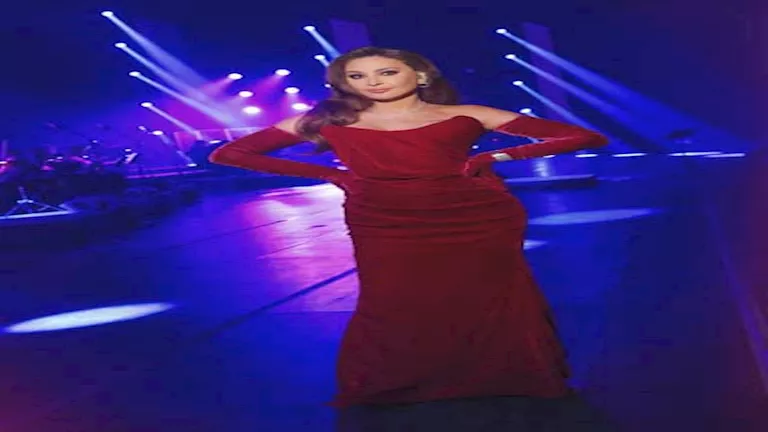 ظهرت إليسا بإطلالة ساحرة وجريئة مرتدية فستان أحمر شتوي وطويل كشف عن جمالها وأناقتها.