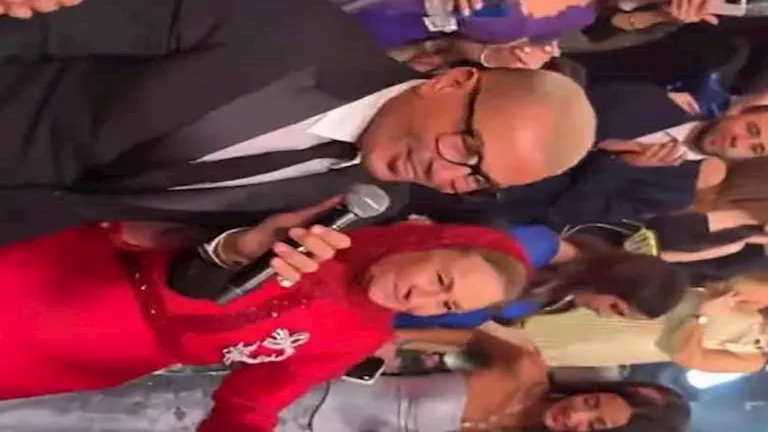 وظهر النجم عمرو دياب وهو يقدم أغنية “شايف قمر”، في حفل الزفاف، وبجواره سيدة مسنة أمسكت ذراعه اليسرى بسعادة، وهي ترقص وتغني.