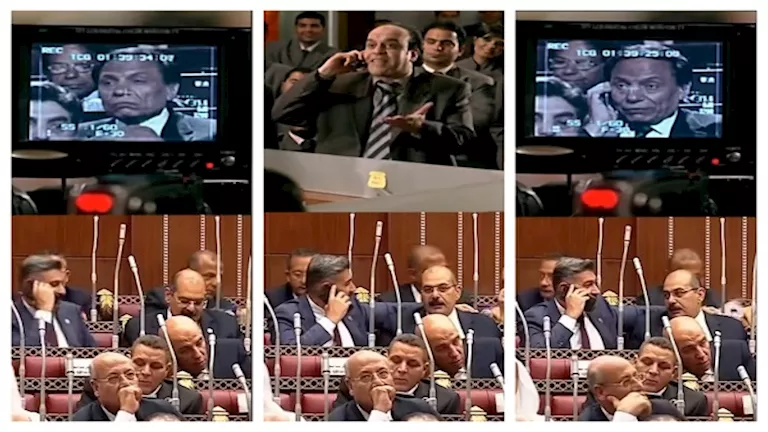 واستعان ياسر جلال بمقطع شهير للزعيم عادل إمام بعد فوزه بانتخابات مجلس الشعب في فيلم “مرجان أحمد مرجان”، عقب ظهوره في جلسة اليوم بمجلس الشيوخ، وهو يتحدث في الهاتف المحمول.