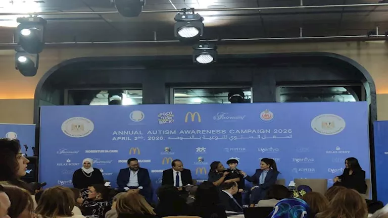 شهد الحفل السنوي للتوعية بالتوحد، الذي أقيم مساء أمس الخميس 2 أبريل في أحد الفنادق الكبرى على النيل في القاهرة، إقامة جلسة حوارية أدارتها الدكتورة داليا سليمان، رئيسة الجمعية المصرية للتوحد، مع نجوم وصنّاع مسلسل اللون الأزرق الذي عُرض ضمن مسلسلات رمضان 2026، ودارت أحداثه حول أسرة لديها طفل يعاني من طيف التوحد.