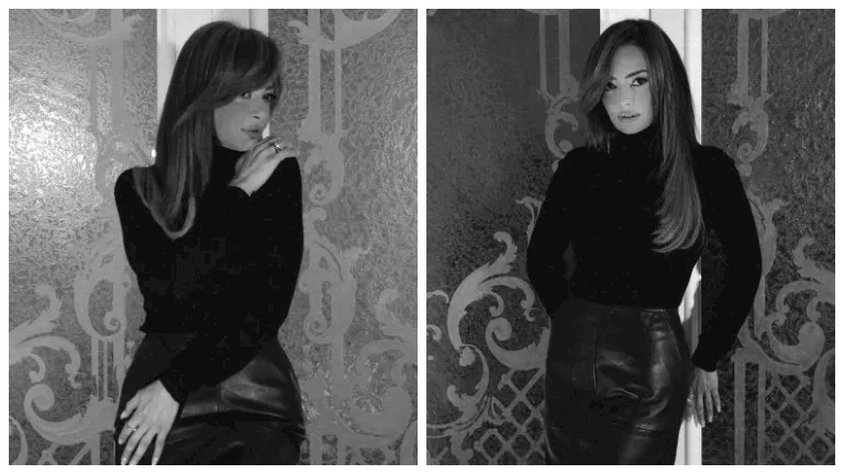 وظهرت داليا بإطلالة كلاسيكية مميزة، مرتدية توب أسود برقبة عالية مع جيبة جلد قصيرة فوق الركبة، ما أبرز رشاقتها وأناقتها.
