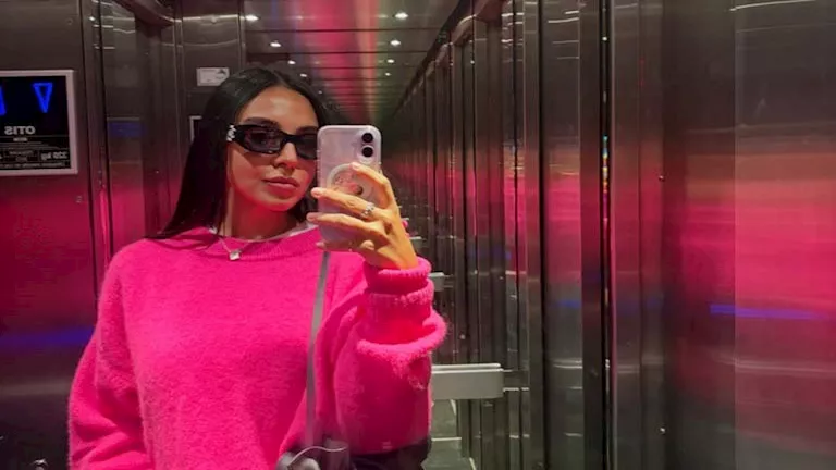 ظهرت سلمى في الصور بإطلالة شتوية، واختارت ألوانا تناسب فصل الربيع، وارتدت “بلوفر” من اللون الوردي.