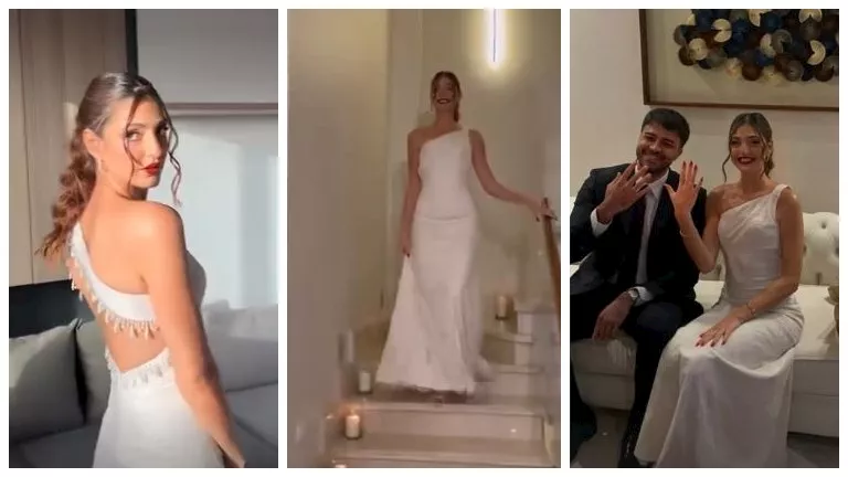 ظهرت دونا وهي تستعرض إطلالتها، إذ ارتدت فستان أبيض أنيق خطفت به الأنظار، كما ظهرت في إحدى الصور مع خطيبها وهما يحتفلان بالمناسبة السعيدة.
