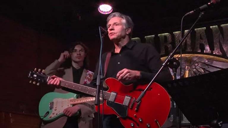 تداول رواد مواقع التواصل الاجتماعي مقطع فيديو على نطاق واسع لوزير الخارجية الأمريكي أنتوني بلينكن وهو يعزف الجيتار بأحد الحانات خلال زيارته لمدينة كييف في أوكرانيا.