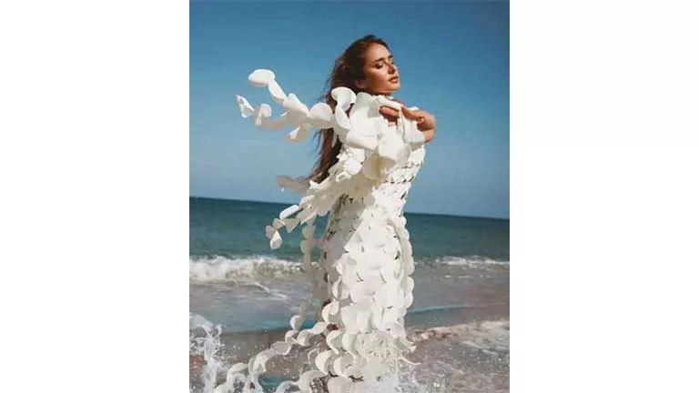 وظهرت نيللي بإطلالة أنيقة وجريئة على شاطئ البحر، حيث ارتدت فستانًا أبيض طويلًا بتصميم غير تقليدي، بفتحة ساق جريئة.