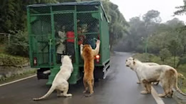 وعادة ما يكون الزوار في شاحنة كبيرة على شكل أقفاص حديد، وتتجول في الحديقة بين الحيوانات المفترسة، ولخلق حالة من الإثارة، يتم ربط قطع كبيرة من اللحم النيء بقضبان القفص من الخارج، لجذب انتباه الحيوانات وجعلها تقترب من الشاحنة لتبدأ في مواجهتهم.