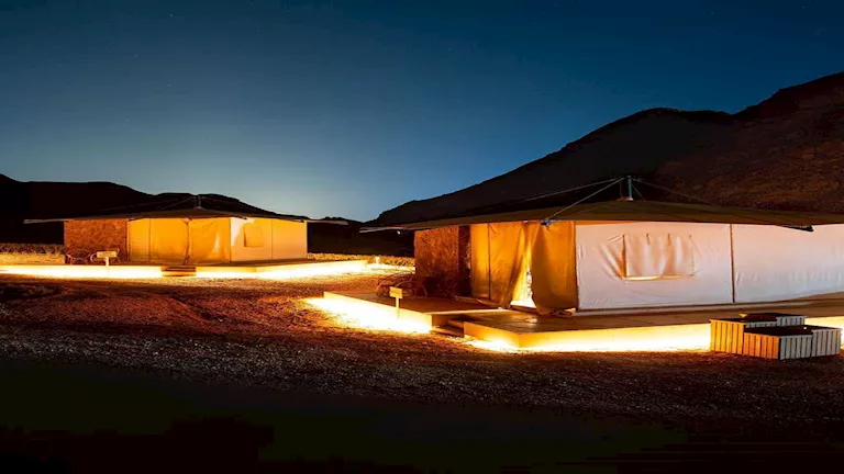 ويتميز بخيام أنيقة مجهزة بمكيفات هواء، حمامات خاصة، وحتى “جاكوزي” في بعض الوحدات.