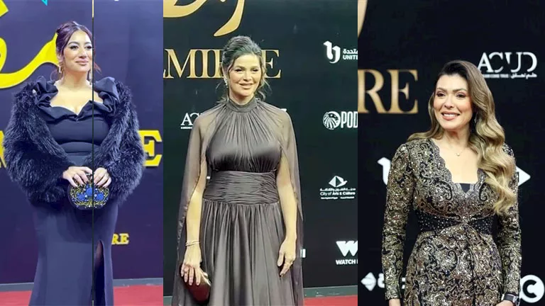 اختارت فيفي عبده فستانا ذهبيا ميتاليك، ونسقت معه “جاكيت” ضخم من الفراء بألوان طبيعية، ممسكة بحقيبة يد مرصعة بالكريستال، مما عكس شخصيتها المحبة للظهور القوي.