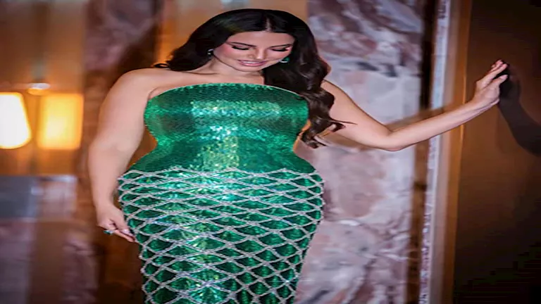 أما الجزء السفلي فزينته تفاصيل شبكية ونقوش مستوحاة من حراشف السمك، ما منح الإطلالة طابعًا جذابًا ومختلفًا.
