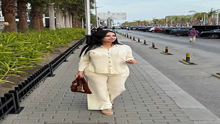 وارتدت دعاء سوت أنيق مكونة من قطعتين شميز وبنطلون باللون الأوف وايت، ونسقت مع إطلالتها حذاء بنفس اللون.