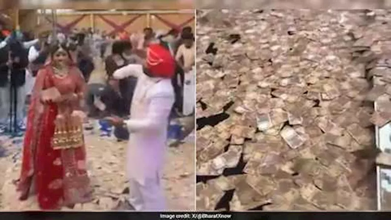 ويظهر فيديو الحفل الذي أقيم في تارانتاران، البنجاب، العروس واقفة في وسط مكان الحفل بينما يقوم العريس وأفراد عائلته برمي رزم النقود في الهواء، بحسب موقع ndtv.