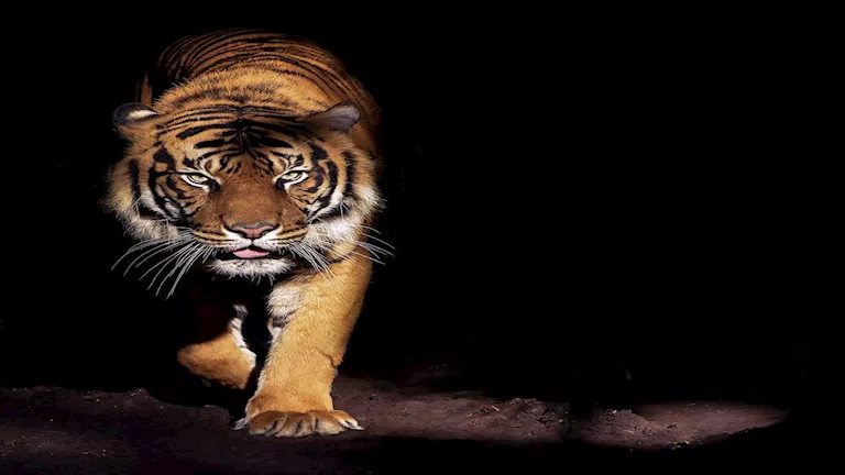 وأظهرت لقطات كاميرات المراقبة دخول النمر إلى المكان بسرعة، في حين بدا الرجل مذهولا للحظة قبل أن ينهض ويهرع خارج القاعة طلبا للأمان.
