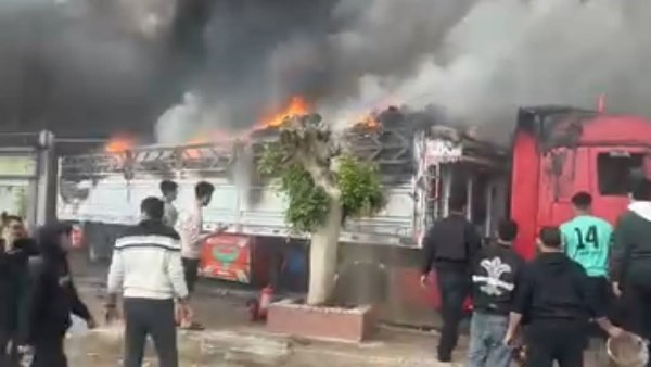 اندلع حريق بإحدى سيارات النقل الثقيل “تريلا” داخل شركة شحن للمنسوجات بشارع المريوطية بنطاق مدينة كرداسة التابعة لمحافظة الجيزة.