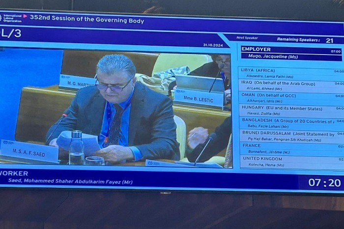 وجاء ذلك في ختام اجتماع مجلس إدارة المنظمة حول فلسطين مجموعة العمال، بمشاركة رئيس الاتحاد العربي للنقابات الأمين العام لاتحاد نقابات عمال فلسطين شاهر سعد، إلى جانب ممثلي الاتحادات العربية والدولية المنضوية في إطار المنظمة الأممية.