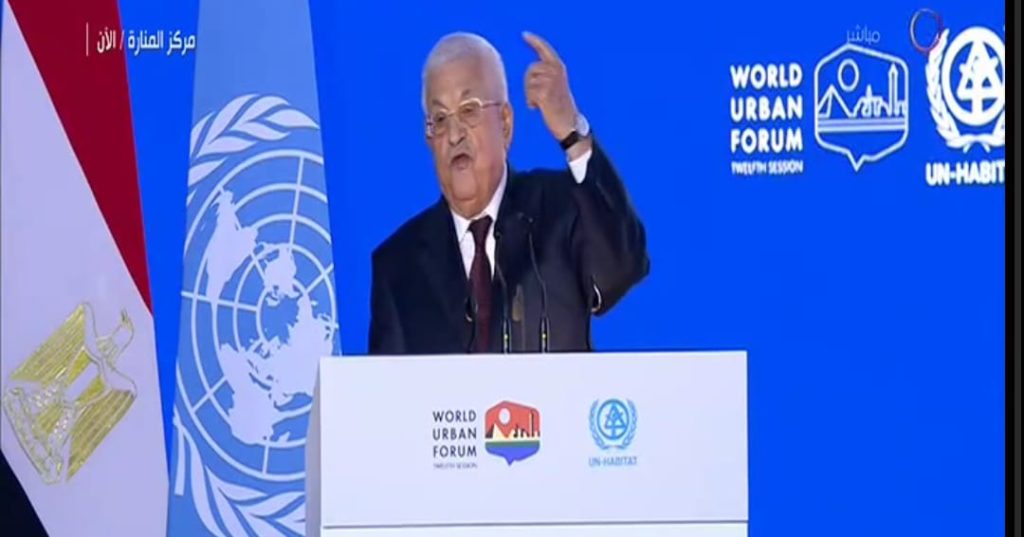 وأضاف سيادته في كلمته بالمنتدى الحضري العالمي الثاني عشر التابع لبرنامج الأمم المتحدة، الذي افتُتح في العاصمة المصرية القاهرة، اليوم الاثنين، أن الاحتلال يمارس جرائم إبادة وتطهير عرقي، ودمر أكثر من 80% من مساكن قطاع غزة ومرافقها ومستشفياتها ومدارسها، ويرتكب جرائم سرقة الأرض والموارد الطبيعية في الضفة الغربية بما فيها القدس الشرقية.