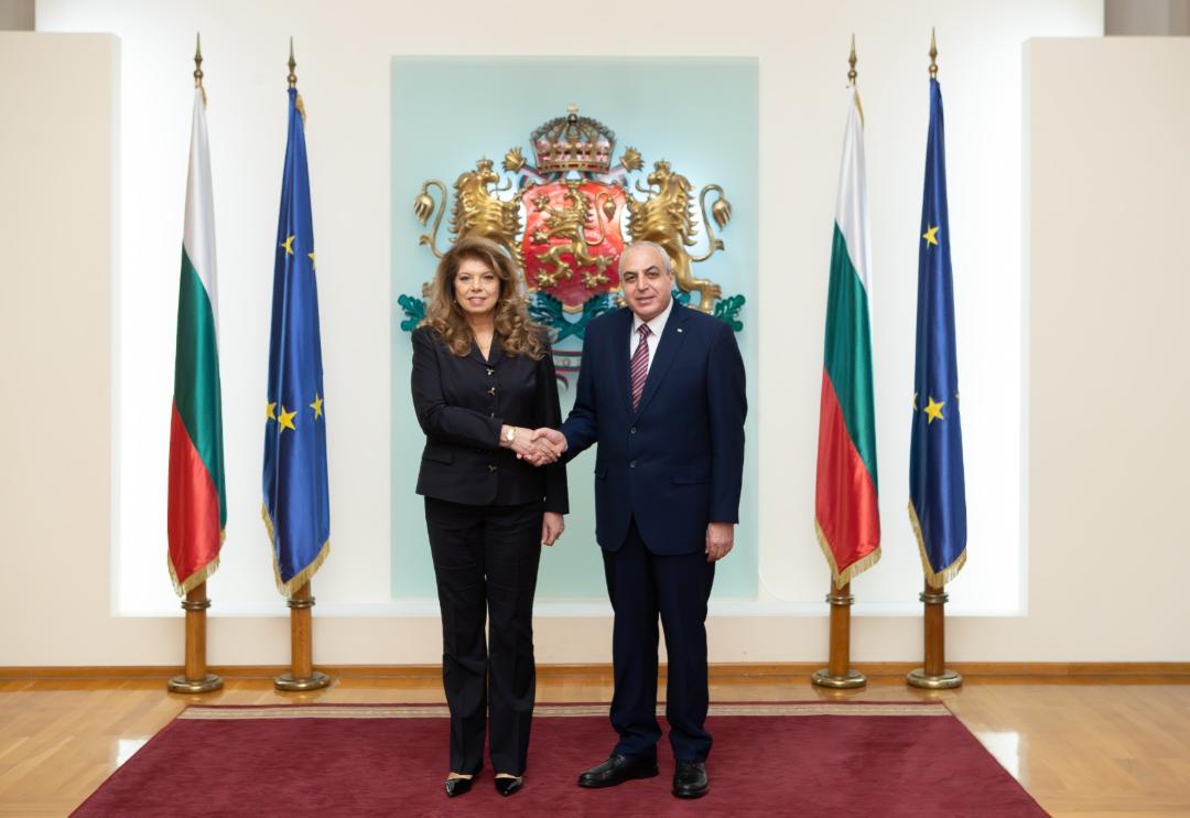 من جانبها، رحبت رئيسة بلغاريا بالسفير الأغا وعبرت عن استعدادها لتقديم كل التسهيلات اللازمة التي من شأنها إنجاح مهمته، وطلبت نقل تحياتها إلى سيادة الرئيس محمود عباس وإلى الشعب الفلسطيني.