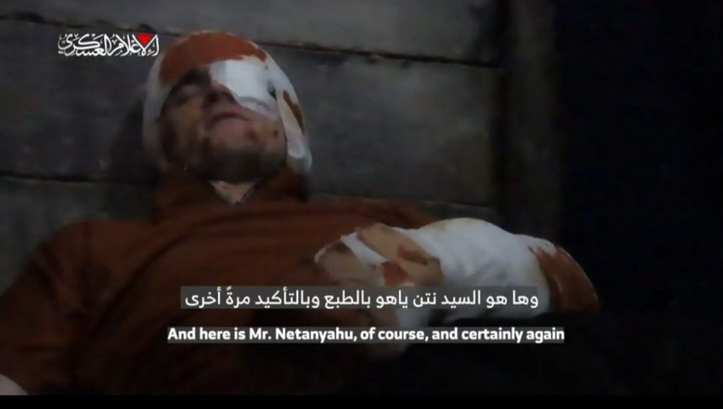 وقال: من فضلكم لا تجلسوا في بيوتكم ولا تدعوا الحكومة تطبعكم على هذا الوضع، أنقذونا. ها هو السيد نتنياهو بالتأكيد مرة أخرى سيقول إن هذه حرب نفسية، وأنا سأقول ما هي الحرب النفسية الحقيقية، الحرب النفسية الحقيقية التي هي بداخلي، وهذا مقطع الفيديو ربما يكون الأخير الذي ستشاهده عائلتي.