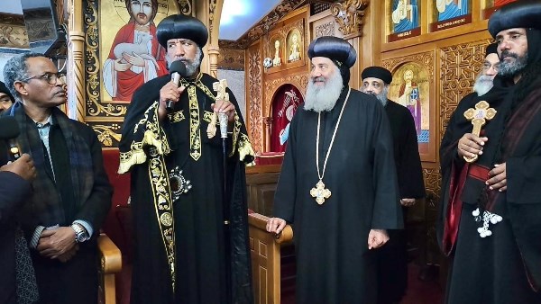 حيث قدم نيافته التهنئة للواء خالد شعيب محافظ مطروح، والقيادات الأمنية والعسكرية والتنفيذية والدينية والمحلية.