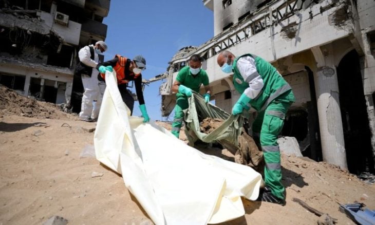 وفي وقت سابق الأربعاء، أعلن المكتب الإعلامي الحكومي في قطاع غزة، عثور الطواقم الطبية على مقبرة جماعية ثالثة داخل مجمع الشفاء الطبي بمدينة غزة، انتشلت منها 49 جثمانا.