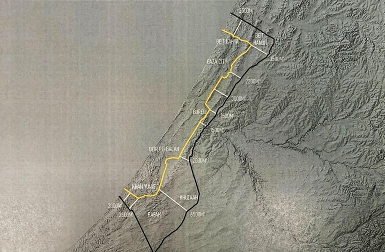 ووفقًا لخريطة الانسحاب الأصلية المنشورة كجزء من الخطة، سيواصل الجيش الإسرائيلي السيطرة على محيط أمني على طول حدود القطاع، وكذلك على حدوده مع مصر في فيلادلفيا، “حتى التأكد تمامًا من عدم وجود أي تهديد من قطاع غزة.