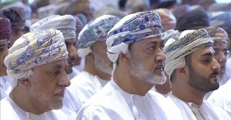 وبعد الانتهاء من الصّلاة تقبّل حضرةُ صاحبِ الجلالةِ السُّلطان هيثم بن طارق المعظم -حفظهُ اللهُ ورعاهُ -التّهاني والتبريكات بهذه المناسبة الطيبة من عددٍ من أصحاب السُّمو والمعالي والمستشارين والقادة العسكريين وعددٍ من المسؤولين، متمنّيًا جلالتُه لهم عيدًا مباركًا سعيدًا.