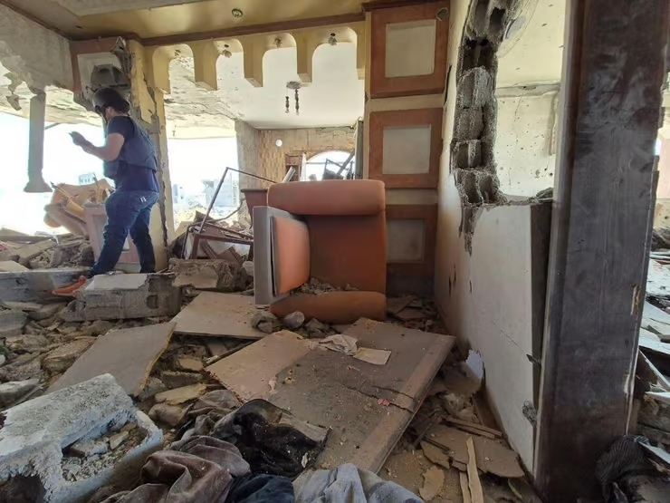 ونشر الصحفي البريطاني دوغلاس مواري صورة جالسا على الأريكة التي شهدت اللحظات الأخيرة في حياة رئيس المكتب السياسي لحركة حماس يحيى السنوار في إحدى المنازل بحي تل السلطان جنوب غزة.