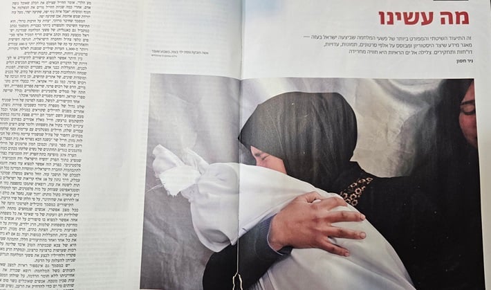 “هآرتس” تخصّص كل الصفحة الأولى للملحق الأسبوعي الهام لعنوان هذا التحقيق الذي تنشر معه صورة سيدة فلسطينية تغرق في دموعها وهي تحتضن جثة طفلها الرضيع. “