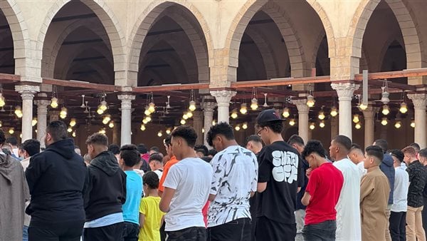 أدى مئات المصلين صلاة العيد برحاب جامع عمرو بن العاص، اليوم الأربعاء، أول أيام شهر شوال 1445، وأول يوم عيد الفطر 2024.