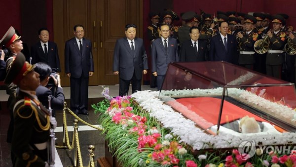 وشارك الزعيم الكوري الشمالي كيم جونغ أون بمراسم العزاء، مرتديا بدلة رسمية وربطة عنق سوداء، مع مجموعة من المسؤولين، وفق صورة نشرتها وكالات الأنباء الكورية.