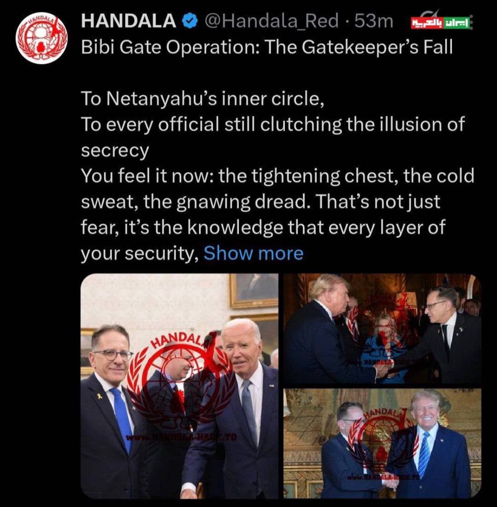 وقالت صحيفة “يديعوت أحرونوت” العبرية إن مجموعة “حنظلة” بدأت في نشر “مستندات وصور وقوائم جهات اتصال تزعم استخراجها من هاتف تساحي برافرمان رئيس مكتب نتنياهو”.