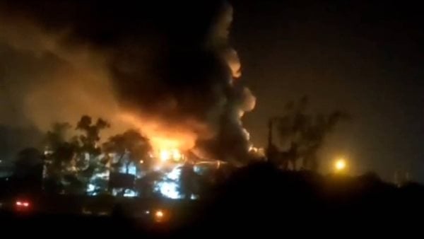 ووثق مقطع فيديو متداول على منصة “إكس”، الحريق المندلع بالمصفاة.