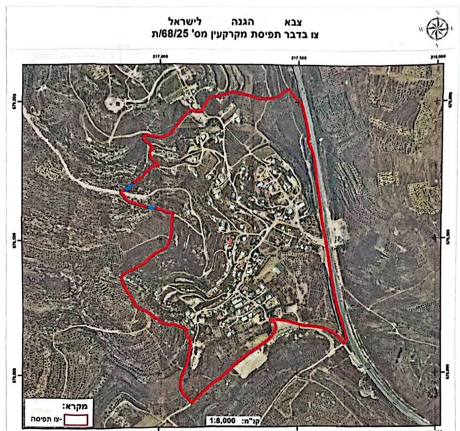 واستهدف الأمر الخامس الذي حمل الرقم ت/56/25 ما مجموعه 7.311 دونماً من أراضي قريتي قبلان وبيتا في محافظة نابلس، وذلك بهدف إقامة منطقة عازلة حول بؤرة “أفيتار”، المقامة على جبل صبيح.