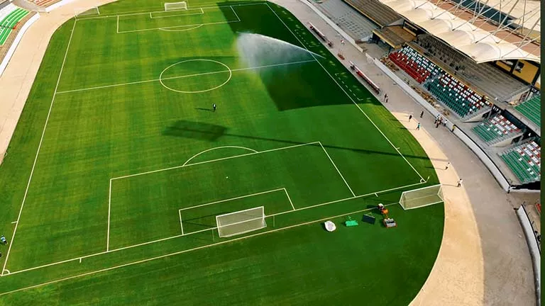 وفي عام 2022، تقرر إجراء بعض التعديلات على الملعب وتم استكمالها في 2025، بعدما قرر الاتحاد الأفريقي عدم إقامة أي مباراة عليه، حتى تم تغيير أرضيته إلى عشب طبيعي.