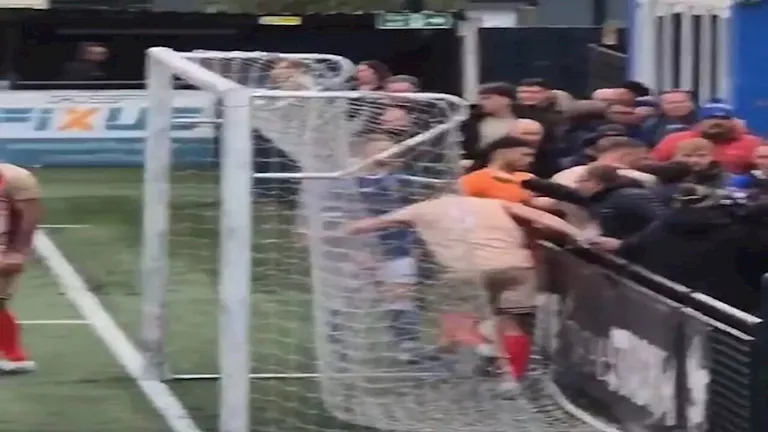 وظهر حارس مرمى فريق كيدزجروف في مقطع الفيديو، وهو يوجه لكمة إلى أحد مشجعي الفريق المضيف، حيث اشتعلت الأجواء في مواجهة دوري الدرجة الأولى الشمالي الممتاز الغربي الإنجليزي.