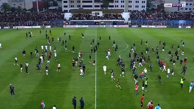 وحدثت الفوضي إثر دخول أعداد من أنصار الفريق المغربي إلى أرضية الملعب، مما تسبب في اشتباكات وتوترات دفعت الأجهزة المنظمة إلى التدخل السريع لاحتواء الموقف.