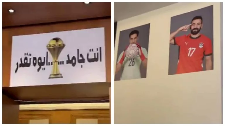 وتداول رواد مواقع التواصل الاجتماعي مجموعة من الصور للاعبي المنتخب، داخل قاعة الاجتماعات الخاصة بالمنتخب في فندق الإقامة، مع لافتة كتب عليها: “ايوة نقدر”، لتحفيز اللاعبين خلال بطولة أمم أفريقيا.