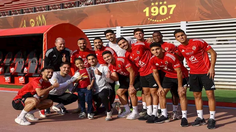وحضر الطفل “محمد أحمد مجدي”، الذي يستعد للسفر إلى الخارج، للخضوع لعملية “زرع نخاع”، صباح اليوم الخميس، إلى المران الجماعي للفريق الأول لكرة القدم بالأهلي، التقط العديد من الصور رفقة نجوم الفريق.